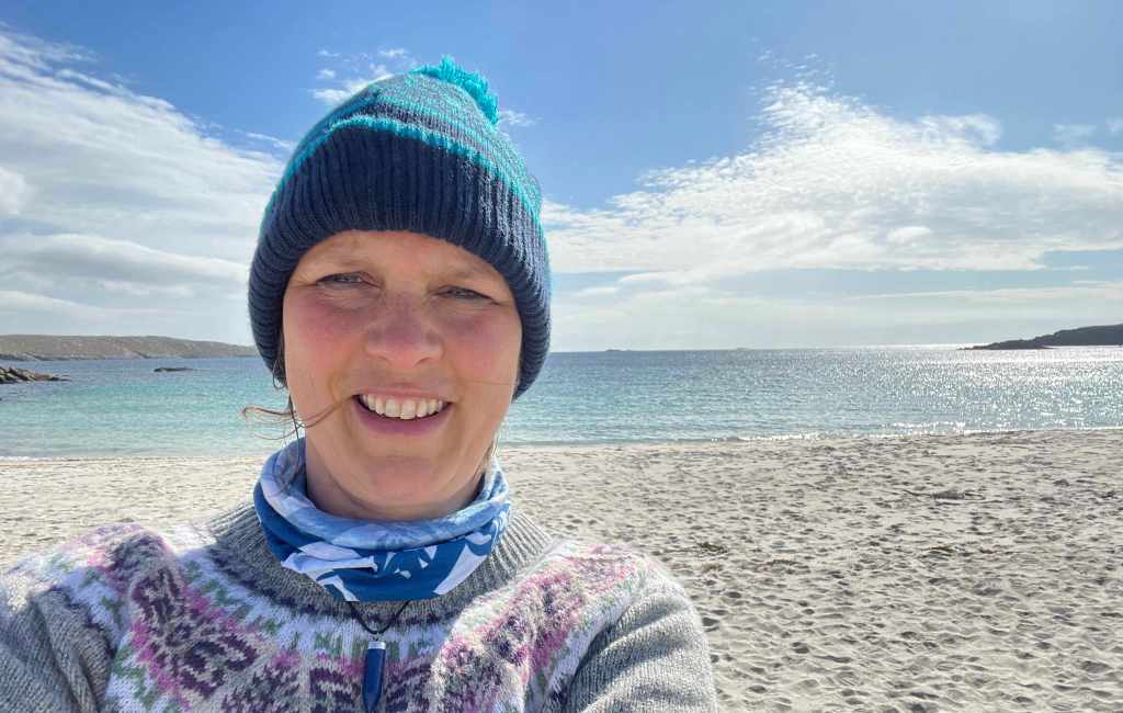 When I’m not working I love getting to wild places in my campervan. Here I am wearing a traditional Shetland “Gansie”.
